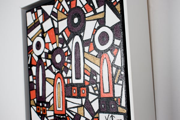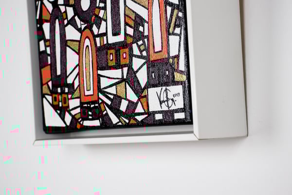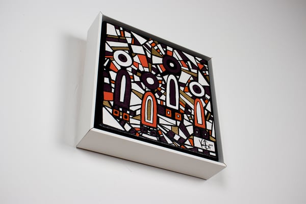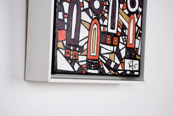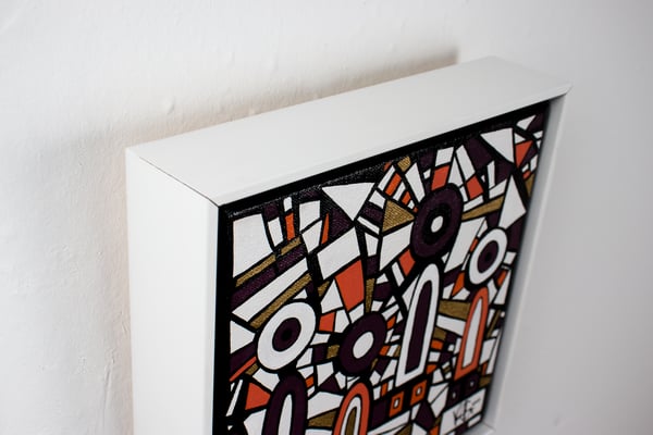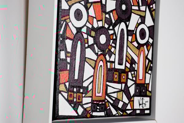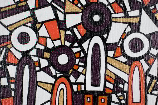 „Zersplitterte Wege“ feiert die Vielfalt der Wege, die Menschen einschlagen können. Die farbintensiven Fragmente in Violett, Gold, Koralle und Weiß bilden ein pulsierendes Mosaik, das eher an Möglichkeiten erinnert als an Chaos. Nichts ist vorgegeben, nichts festgeschrieben – und gerade darin liegt die Freiheit. Die Figuren bewegen sich inmitten dieser lebendigen Struktur, umgeben von Wegen, die sich verzweigen, kreuzen, öffnen und wieder verschwinden. Jeder Schritt eröffnet neue Richtungen, jede Begegnung schafft einen Moment der Verbindung. Die Zersplitterung wirkt hier nicht trennend, sondern erweiternd: Sie ermöglicht, sich neu zu orientieren, sich auszuprobieren und immer wieder andere Menschen zu treffen. „Zersplitterte Wege“ ist ein Bild darüber, wie vielseitig Beziehungen sein können – dynamisch, überraschend, bunt. Ein Werk, das zeigt, dass auch ungewöhnliche Pfade bereichernd sein können und dass im Durcheinander oft die interessantesten Möglichkeiten entstehen.