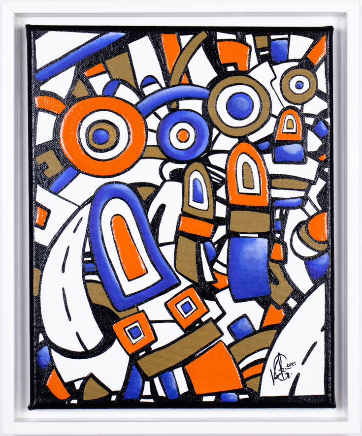 In "Verflochtene Wege" verdichten sich Linien, Formen und Figuren zu einem vielschichtigen Geflecht von Wegen – mal parallel, mal kreuzend, mal sich wieder entfernend. Jede Bahn erzählt von Entscheidungen, Begegnungen und Abzweigungen, die das Leben formt.