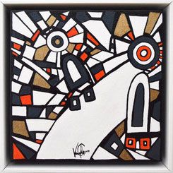 Kunstwerke, die Ihren Alltag begleiten – im Wohnbereich, über dem Schreibtisch oder als feinen Akzent in kleineren Räumen. Meine kleinen Formate bringen die präzisen Linien, Formen und